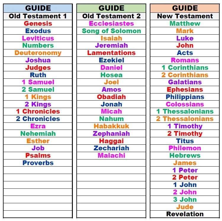 Old Testament 1, Old Testament 2 and New Testament books. The back of the Guide provides help with book pronunciations.